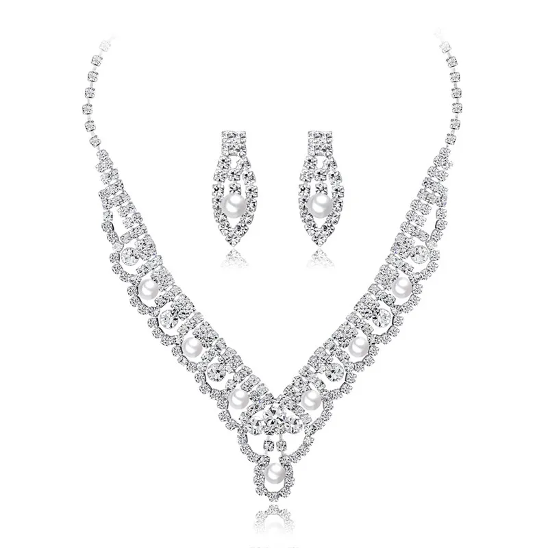 New Crystal Bridal Wedding Necklace Earring Jewelry Sets Silver Color Rhinestone Necklaces With Pearl For Women Jewellery Jewelry Sets Aliexpress